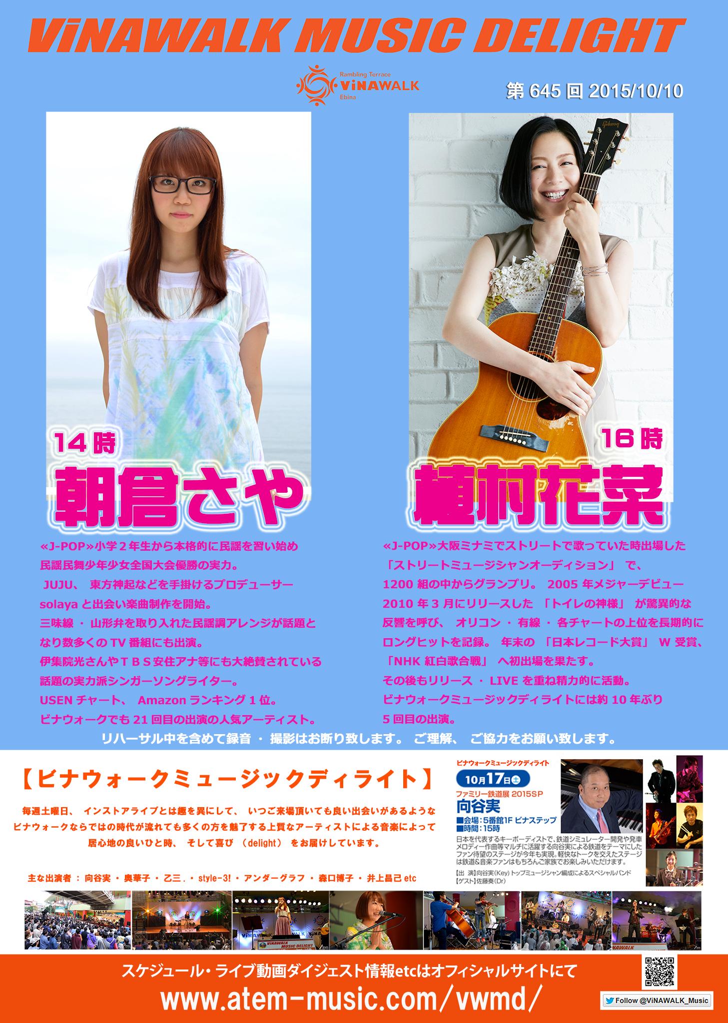 - 16:00〜 2nd stage 植村花菜:ビナウォークミュージックディライトには約 10 年ぶり 5 回目の出演